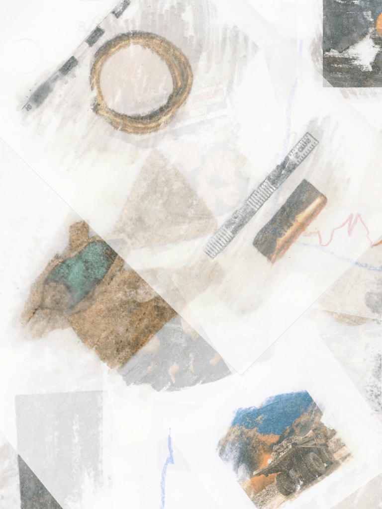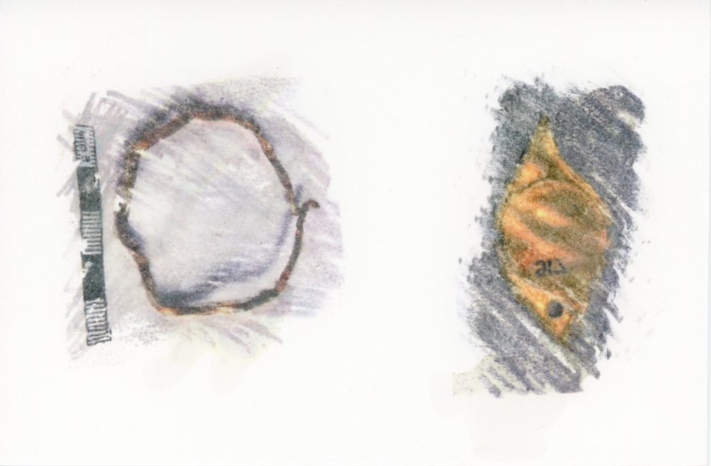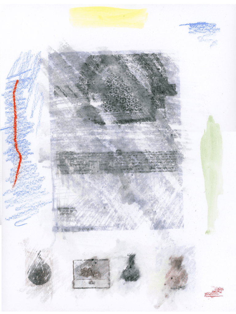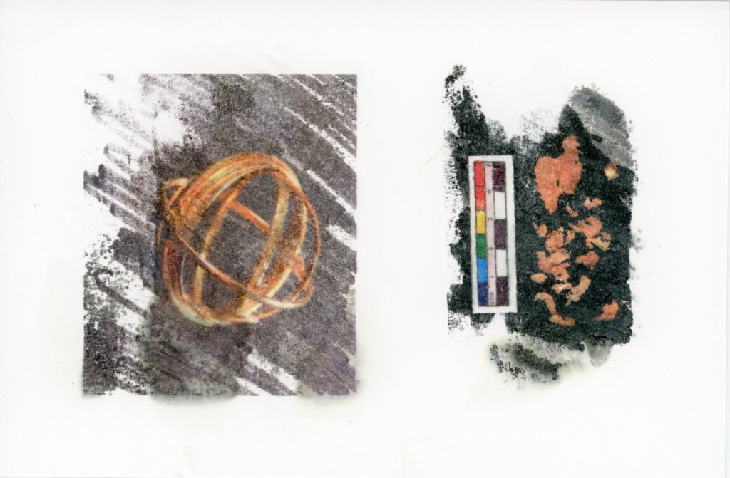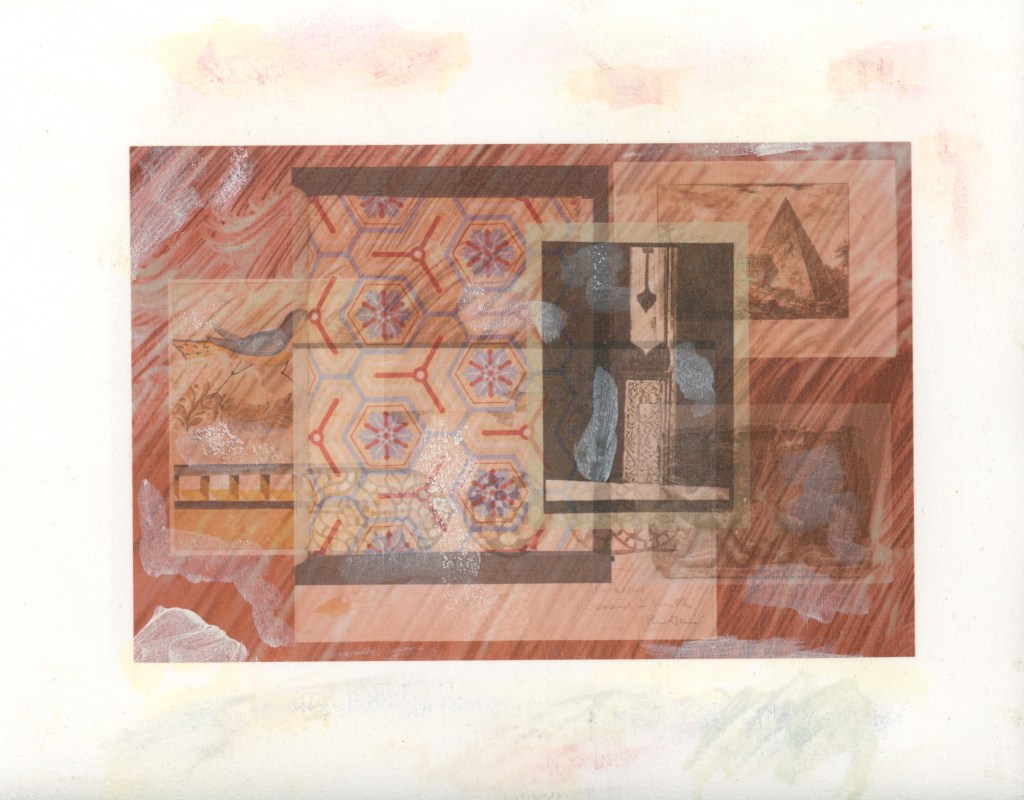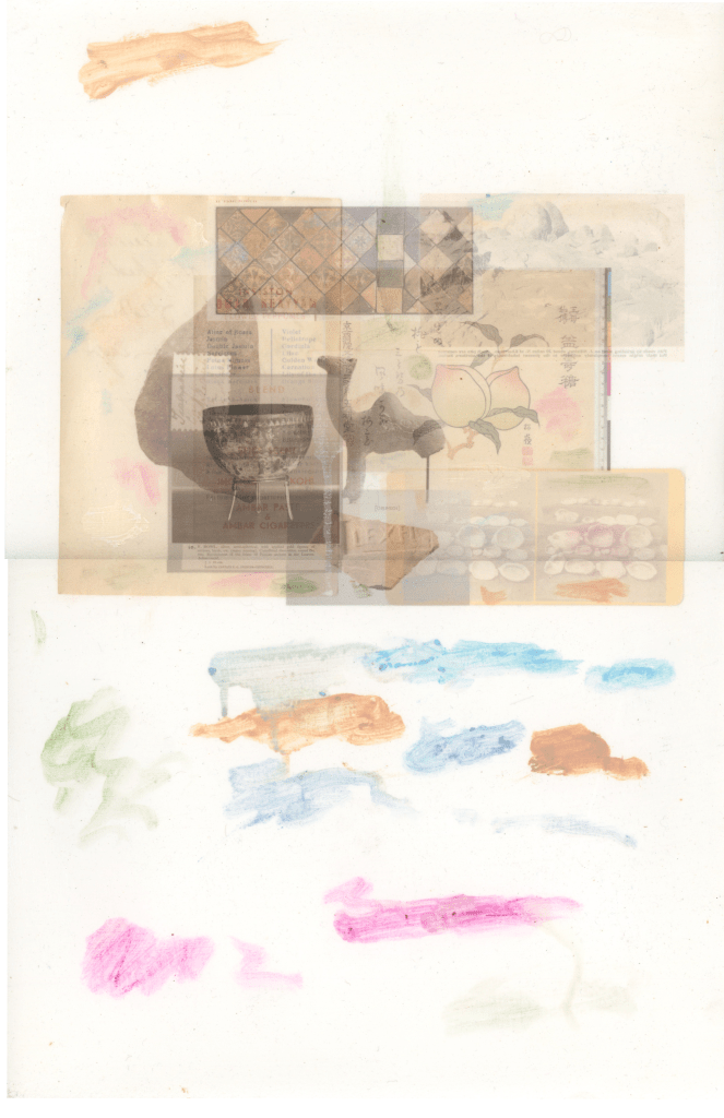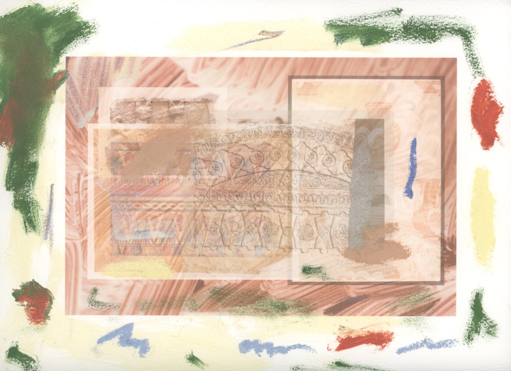 “Spolia”, found and trasnfered images, oil, colored pencil 2024